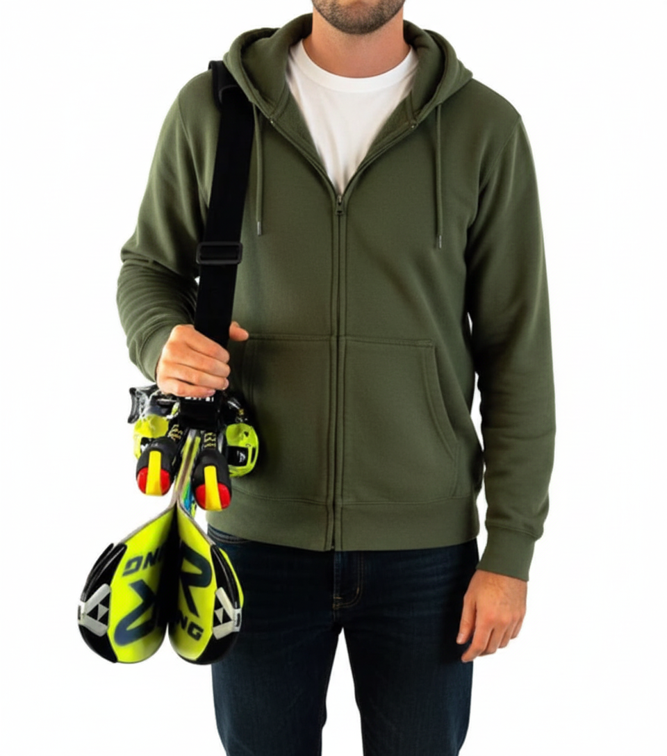 SkiLoop gör det enkelt att bära skidorna bekvämt över axeln – så transporten blir smidig istället för ansträngande.